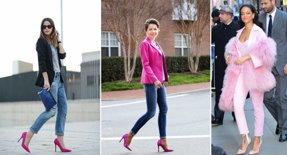 Ngoài ra, bạn có thể phối giày ánh kim hoặc nữ trang để tăng độ sang trọng cho những set đồ có màu hồng chiếm tối đa hay thậm chí là toàn màu hồng.